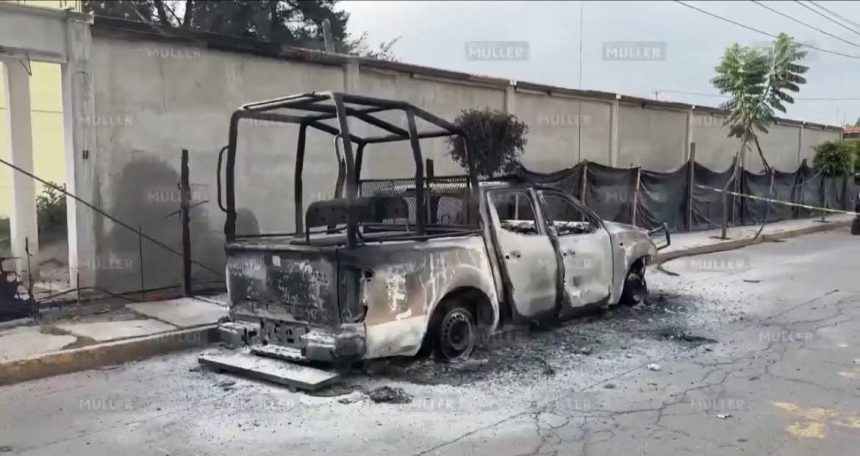 Nextlalpan, Mex. Vecinos de Nextlalpan incendiaron una patrulla de la Policía Municipal frente a la casa de la presidenta municipal,…